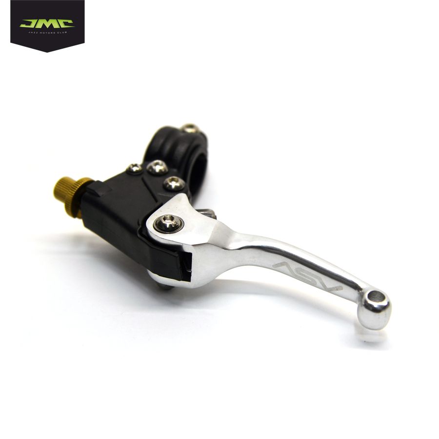 Высокопрочные рычаги управления сцеплением и передним тормозом. Рычаги изготовлены из высокопрочных материалов, выдерживают удары при падениях байка и позволят надолго забыть про сломанные ручки.  Все рычаги ASV имеют специальную конструкцию, которая позволяет рычагу откидываться в случае падения или опрокидывания байка. Вместо того, чтобы изгибаться или ломаться, рычаги ASV просто поворачиваются наружу, когда происходит удар, и мгновенно возвращаются назад. Одновременно, отткидная конструкция рычагов защищает кисти и предплечья райдера от травмирования в случаях соскальзывания рук с руля во время падения. Специальная консольная пружина с высоким напряжением мгновенно возвращает рычаг в исходное положение и не позволяет рычагу поворачиваться во время езды. Эта высококачественная пружина рассчитана на более чем 100 000 оборотов, не теряя ее первоначального напряжения. Рычаги ASV имеют бол