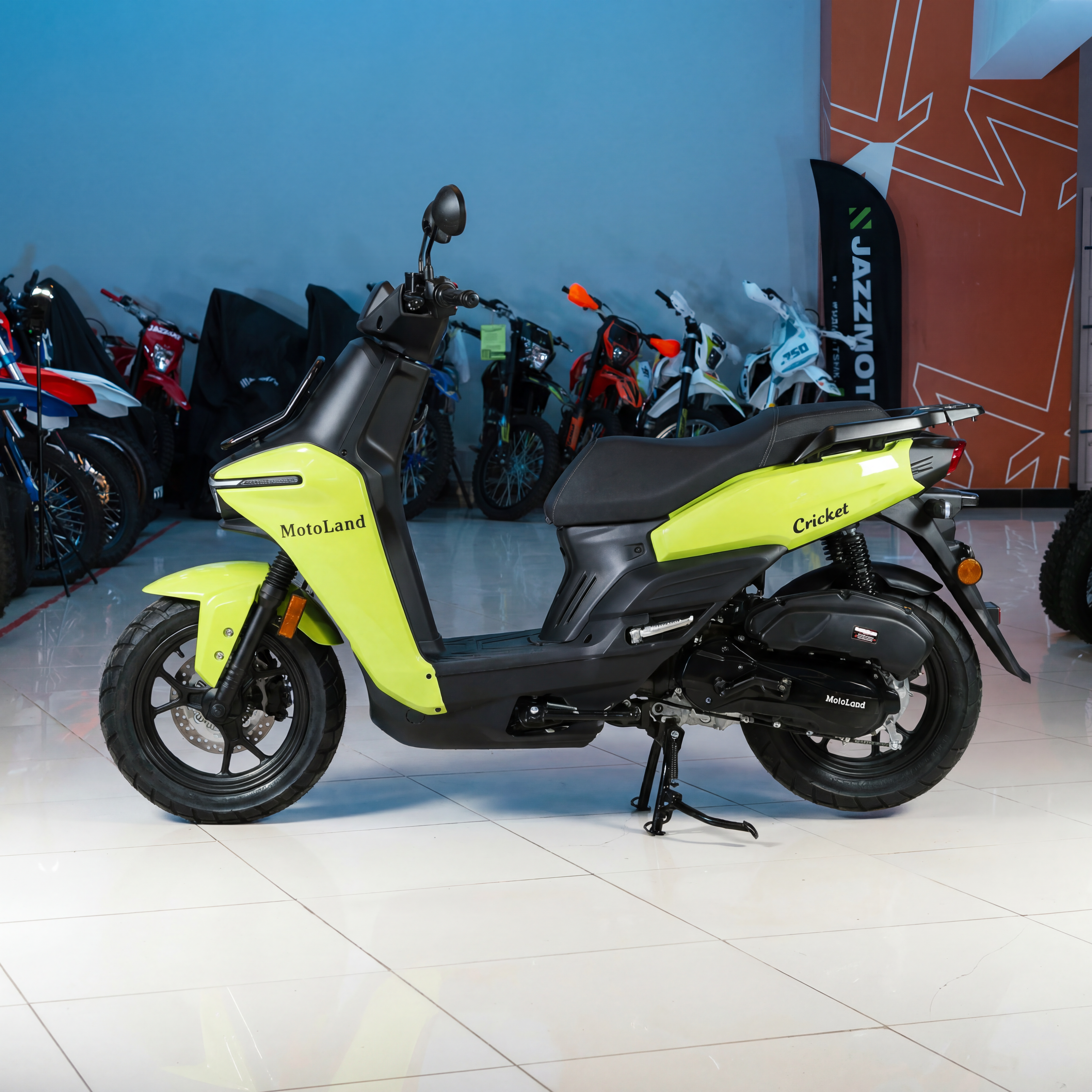 Скутер Motoland CRICKET 150 (WY150-5D) — мощная модель скутера CRICKET 150, которая выделяется высоким качеством, легкостью в обслуживании и продолжительным сроком службы. Эта модель хорошо подходит для повседневной эксплуатации: установленная резина позволяет уверенно ездить не только по асфальту, но и по грунтовым дорогам. Надежная конструкция, удобное управление и практичное оснащение делают скутер удачным выбором для тех, кто ценит комфорт, простоту и тяговитость.